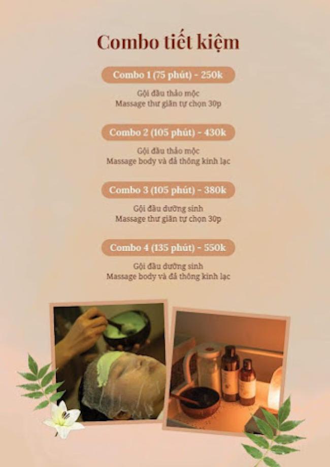 Nước gội ở Lam An được nấu từ 12 loại nguyên liệu thảo dược giúp tóc chắc khoẻ bóng mượt, với cách kết hợp công thức riêng khiến nó trở nên thật đặc biệt. Các loại nguyên liệu được phơi khô, sau đó rang đúng lửa cho dậy mùi thơm và phát huy tối đa công dụng của các vị thảo dược. * Trước khi làm liệu trình Lam An sẽ cho bạn lựa chọn nhiệt độ nước, loại dầu gội, độ lực massage và những lưu ý đặc biệt khác để liệu trình diễn ra liền mạch, yên tĩnh, giành cho bạn từng phút giây thư giãn nhất.